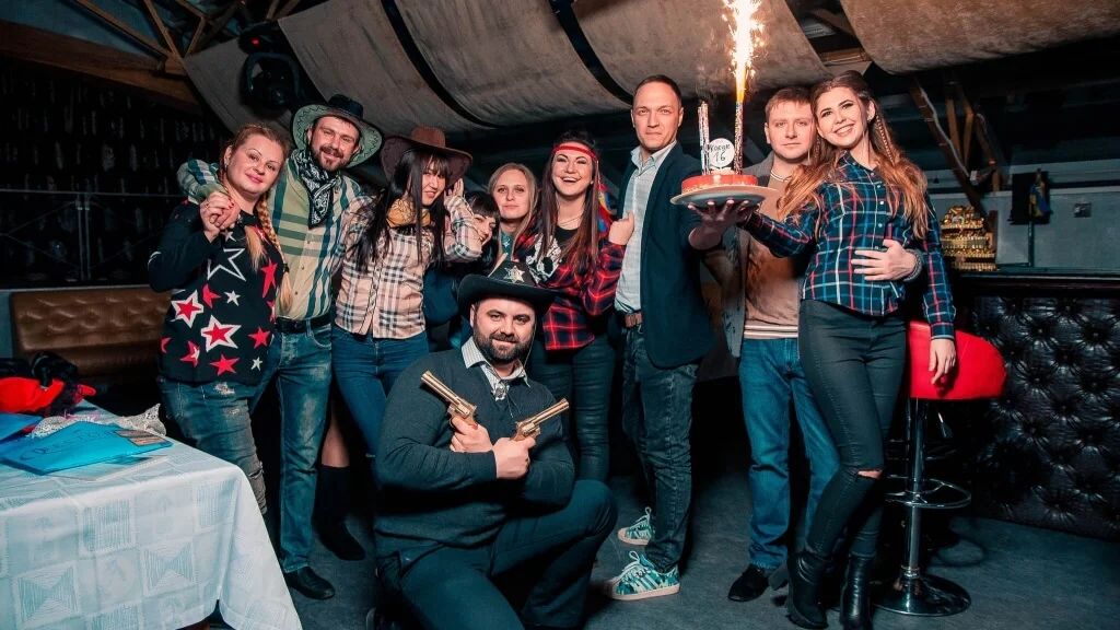 Играйте, не выходя из офиса! Ведущий приедет к вам, привезет все необходимое и превратит привычный интерьер в необитаемый остров, ковбойский салун или другую планету. Вам нужно только собрать коллег, подготовить угощение и впустить к себе праздник.